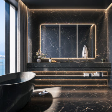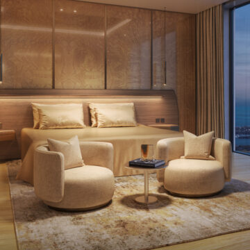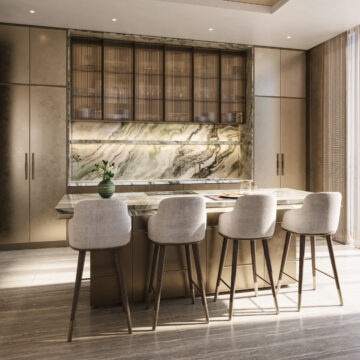Interiors include custom kitchens and bathrooms by Dolce&Gabbana, equipped with Sub-Zero and Wolf appliances, Italkraft millwork, and smart home technology. The building also features distinct collections—including the Suite & Room, Duplex, and Penthouse Residences—each curated to blend the comfort of a private home with the service and elegance of a five-star hotel experience.