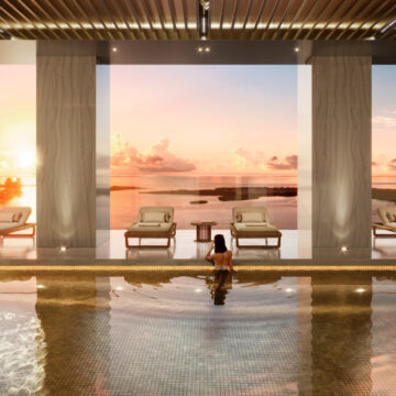 Indoors, wellness and social spaces include an indoor padel court, yoga and Pilates studios, cold and hot plunge pools, spa and juice bar, barber and salon, tailor shop, and recovery suites. For entertainment and gatherings, there’s a theater, billiards lounge, wine cellar, and private dining room.